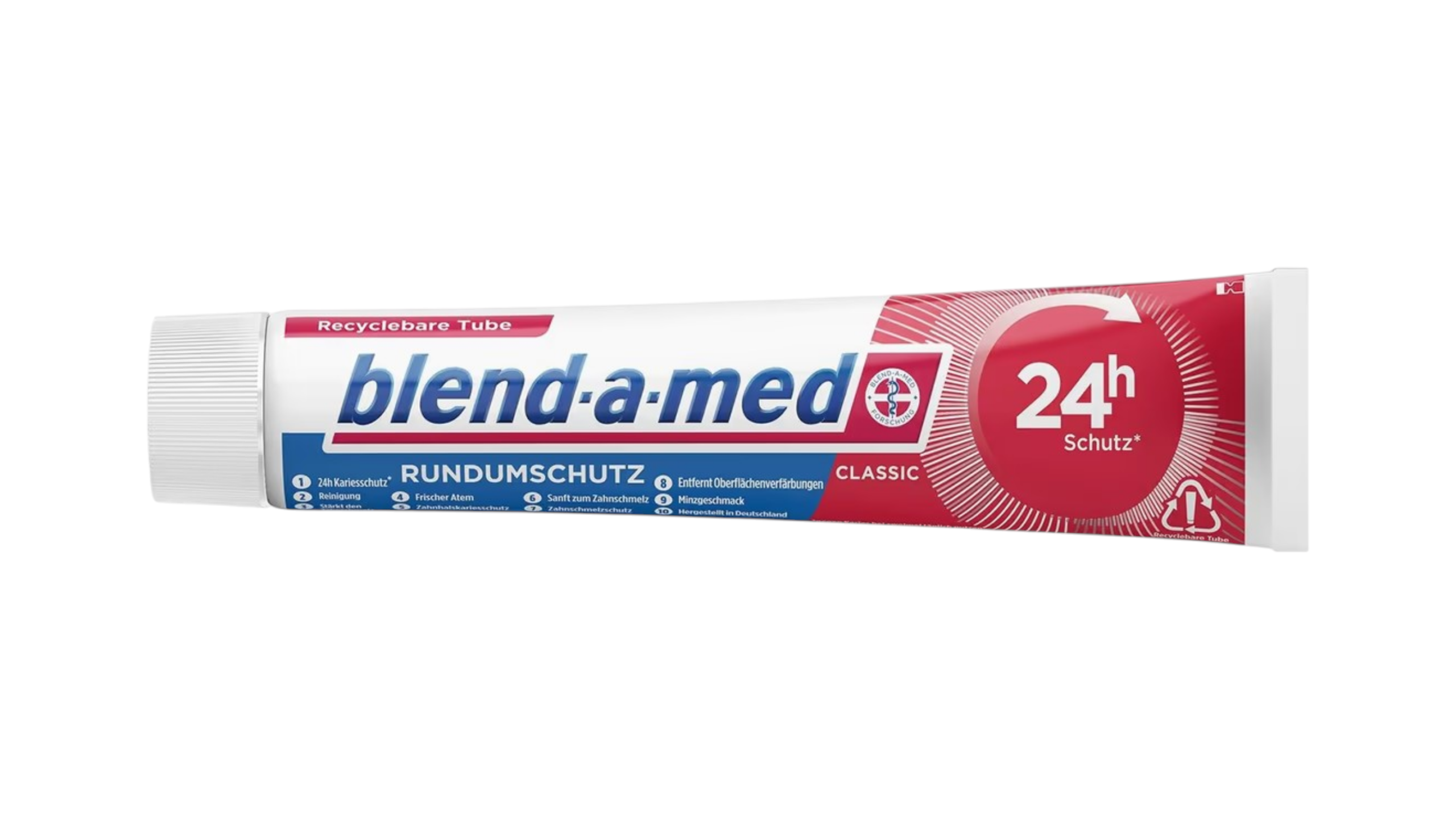Die Classic Zahncreme von blend-a-med beinhaltet Aktiv-Fluorid. Die Creme versorgt den Zahnschmelz mit Mineralien und verleiht Schutz vor Säuren