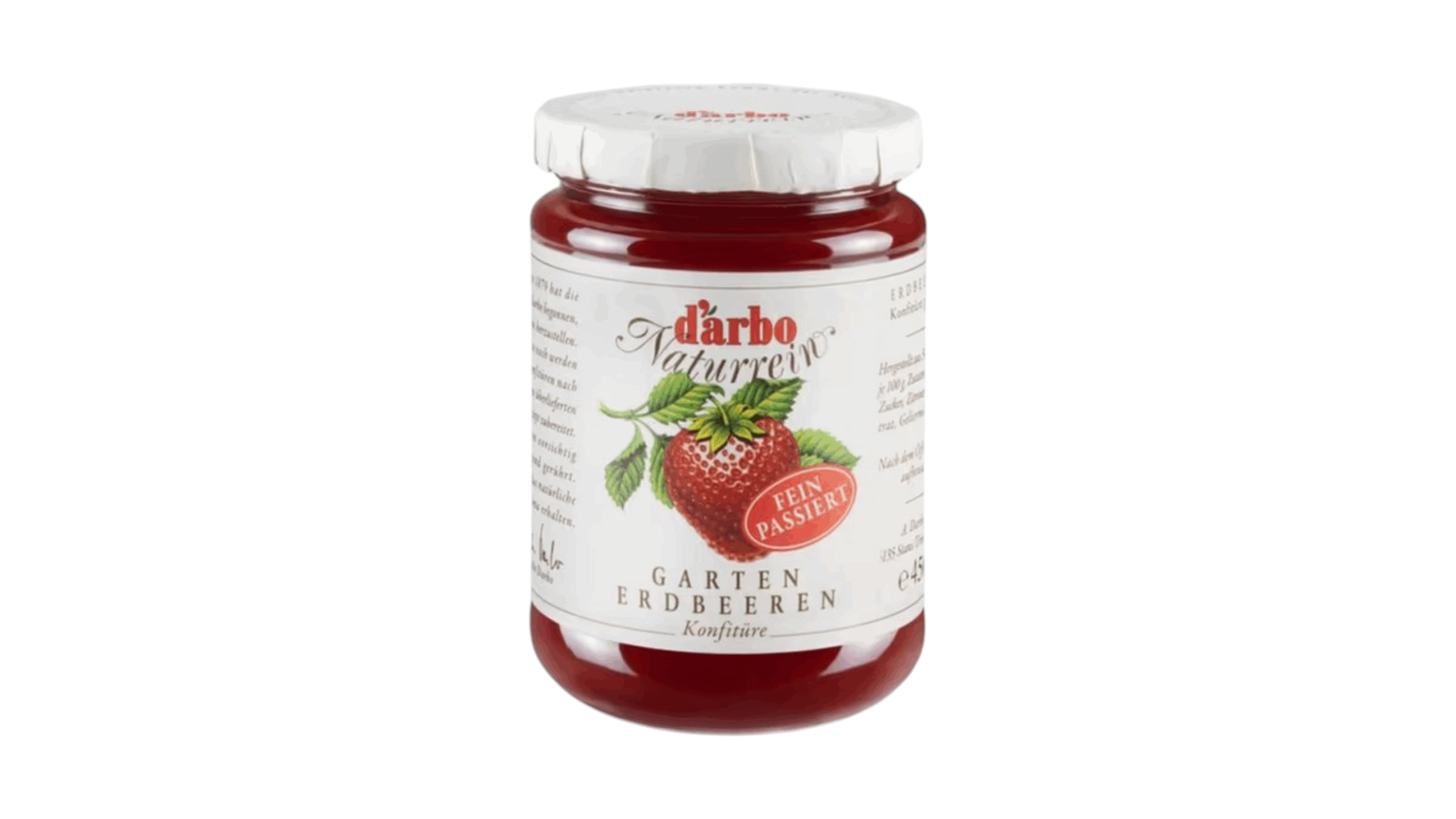 Die Gartenerdbeeren Konfitüre von Darbo verdankt ihren vollen Fruchtgeschmack einem traditionellen Familienrezept. Sie kommt ohne Konservierungsmittel aus