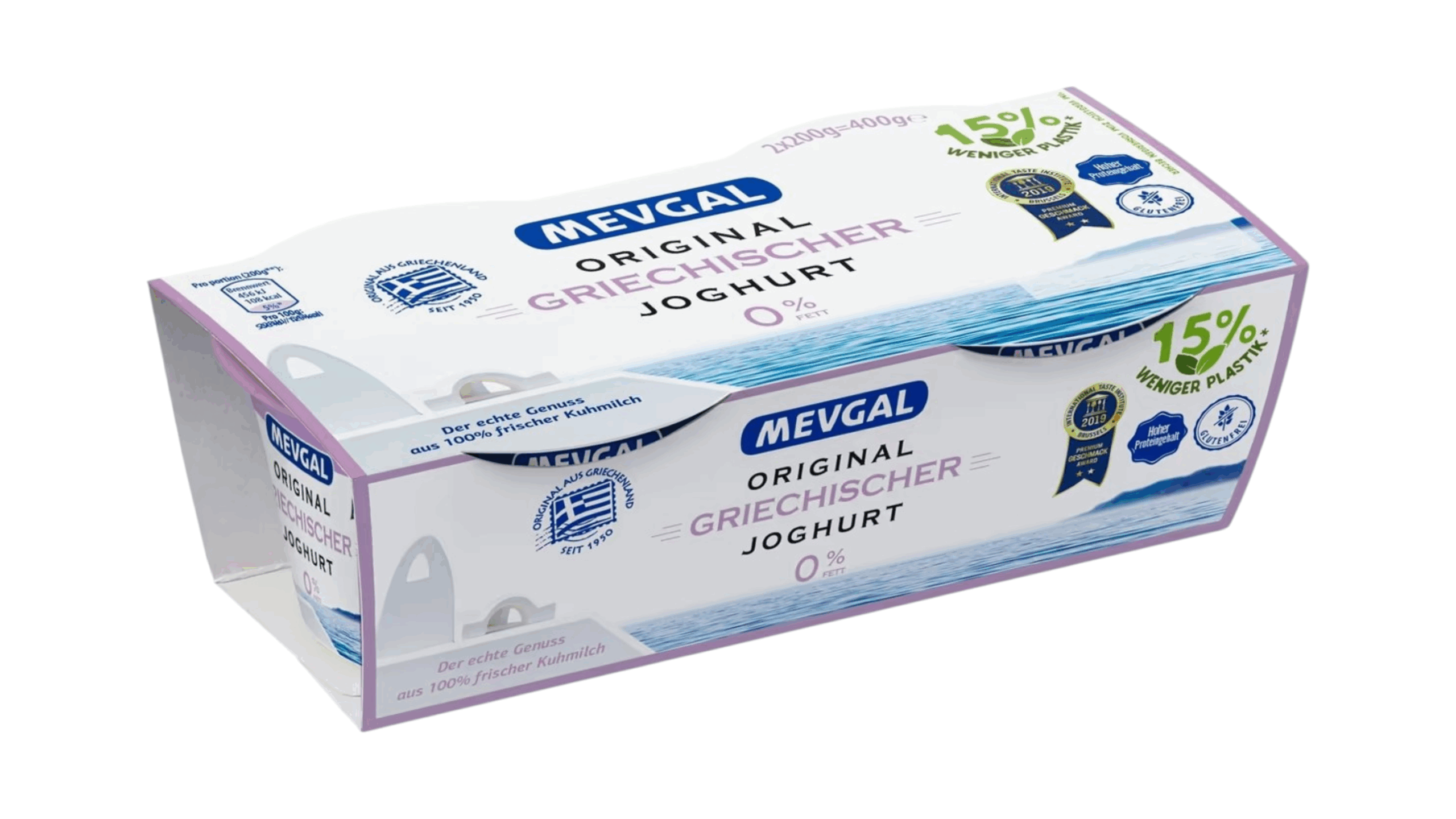 Der köstliche Griechische Joghurt von Mevgal enthält 0 % Fett und ist cremig gerührt. Er wird aus frischer Kuhmilch hergestellt und schmeckt wunderbar mild