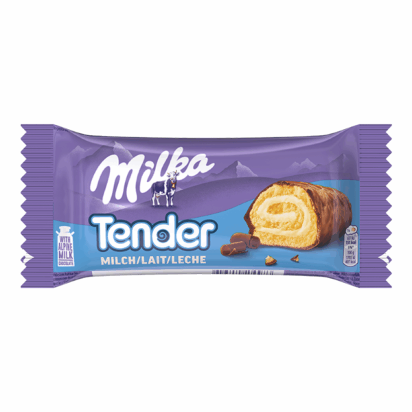 Milka Tender Milch ist der köstlich, lockere Kuchensnack: feine Biskuit-Roulade gefüllt mit leckerer Milchcrème umhüllt mit zarter Milka Alpenmilch Schokolade.