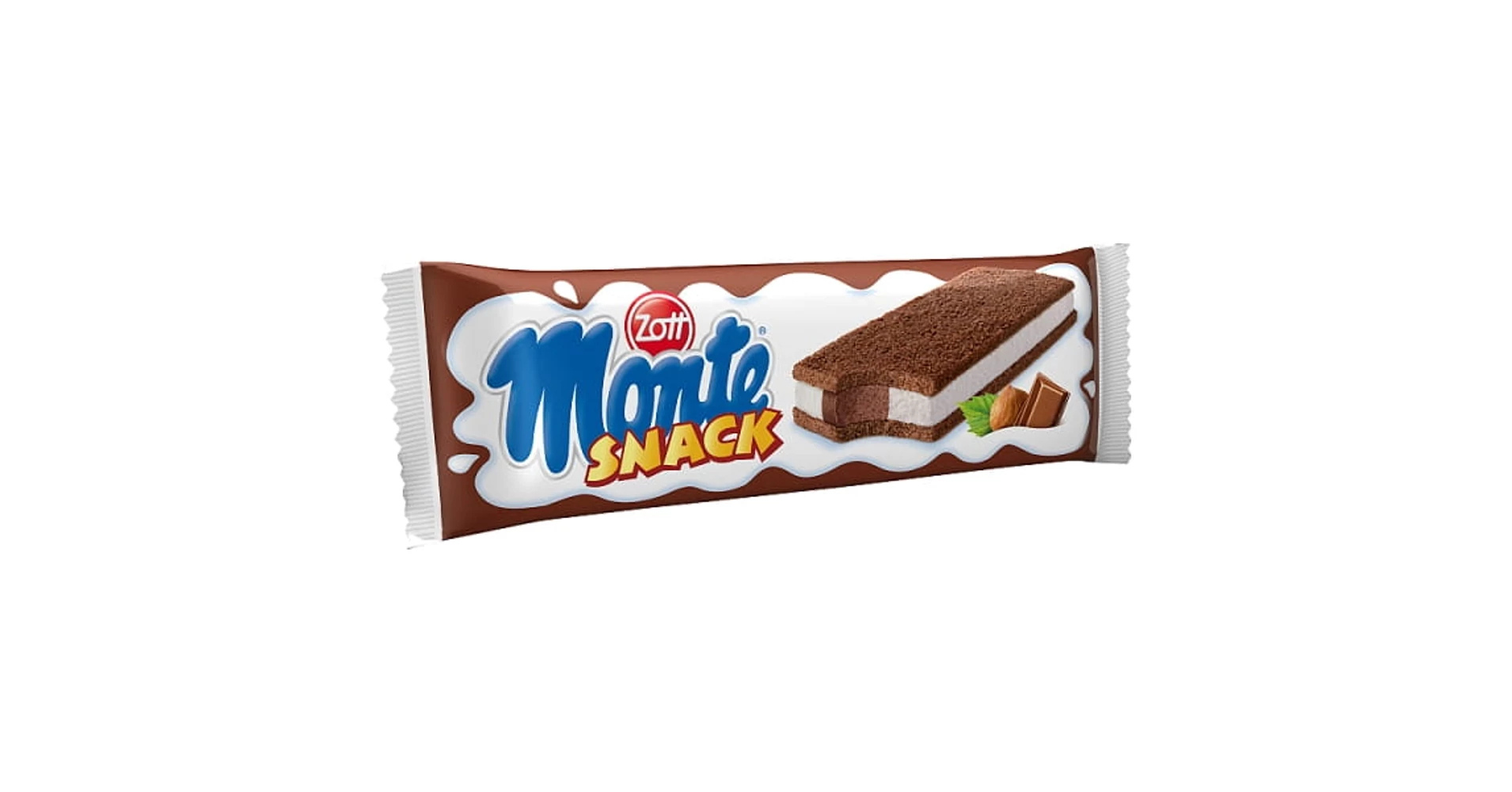 Kuchenschnitte gefüllt mit Milch- und Schokolade-Haselnuss-Creme.